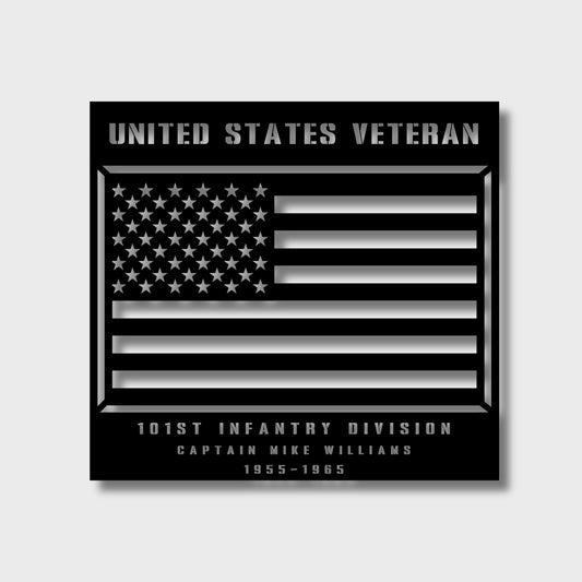 UNITED STATES VETERAN PERSONALIZED AMERICAN FLAG STEEL WALL SIGN