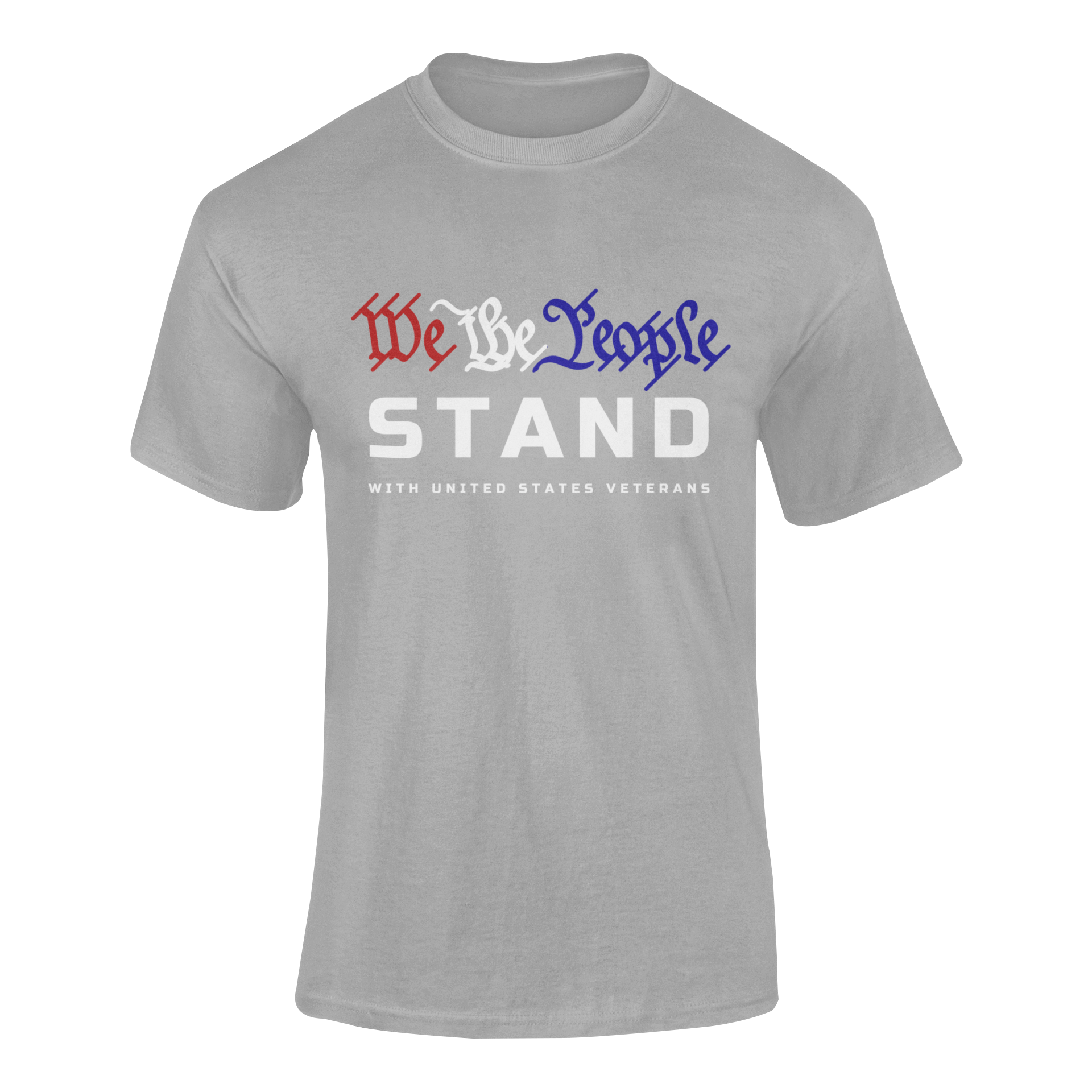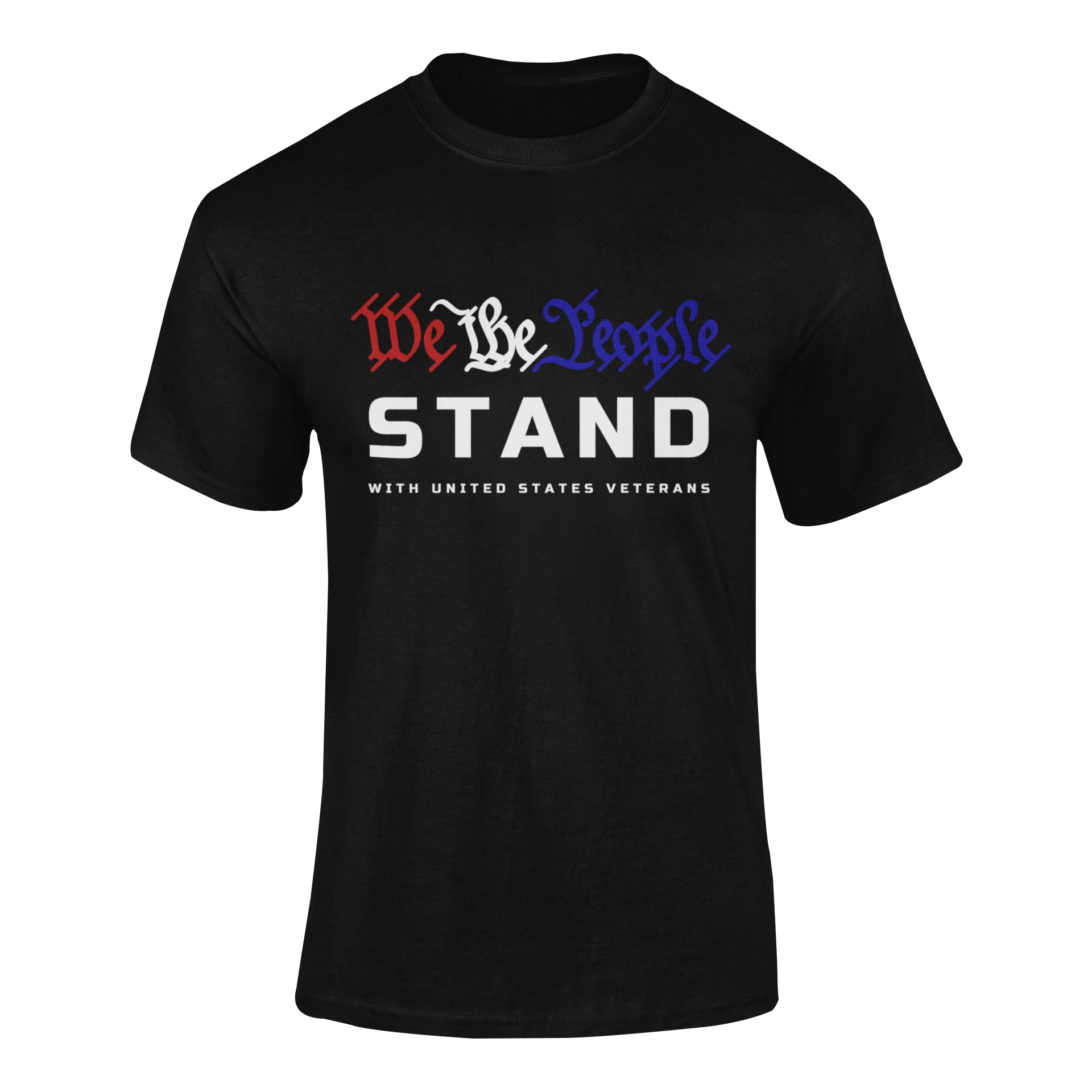 Show your unwavering support for our brave veterans with this stylish and comfortable men's t-shirt. Featuring the powerful words "We The People Stand With Veterans," this shirt is a perfect blend of patriotism and solidarity.